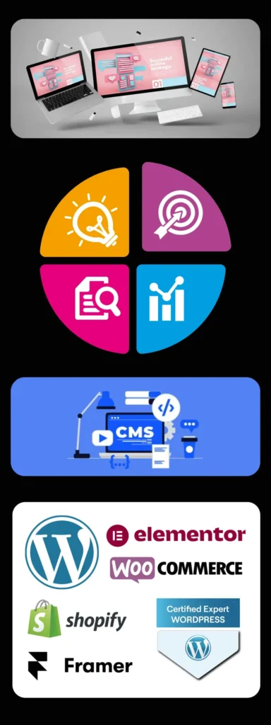 Most of my bespoke website builds use WordPress, one of the most popular CMS systems globally. With my deep WordPress web design expertise, you call the shots on layout, design and integrations. But if you feel that WordPress isn’t quite right for your site, I can build a website from scratch using a different CMS system ( that you prefer from these Wix, Webflow, Shopify, Squarespace) and design a completely bespoke website that’s as unique as you are.
